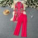 Sieviešu apģērbu kostīms sievietēm, gaišs brieduma stils, vidēja garuma, vienrindu, kroku apdrukas tops + ikdienas bikses ar augstu vidukli