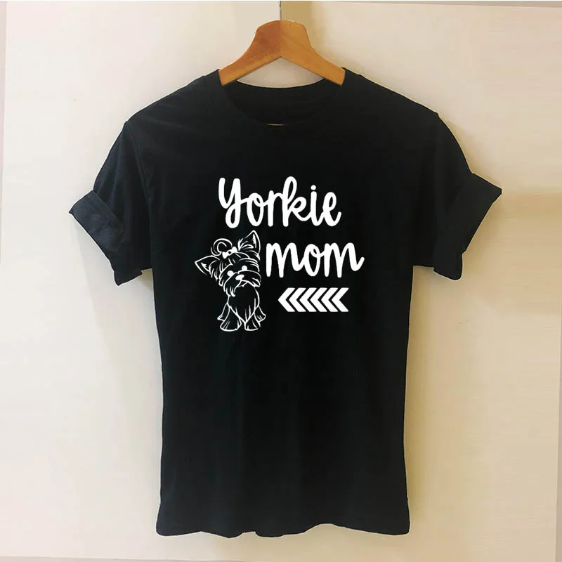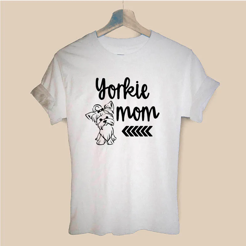 Jorkšīras terjers Jorkšīras suņu mamma Smieklīgs grafisks T-krekls ar īsām piedurknēm un O-kakla kakla izgriezumu Kokvilnas T-krekls Meiteņu T-krekli Sieviešu apģērbs